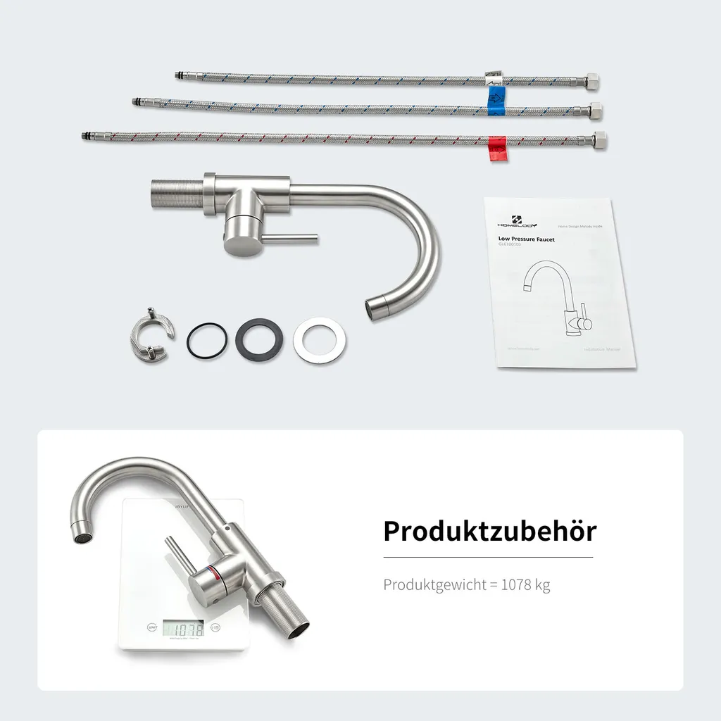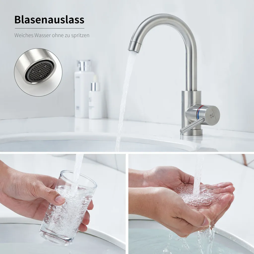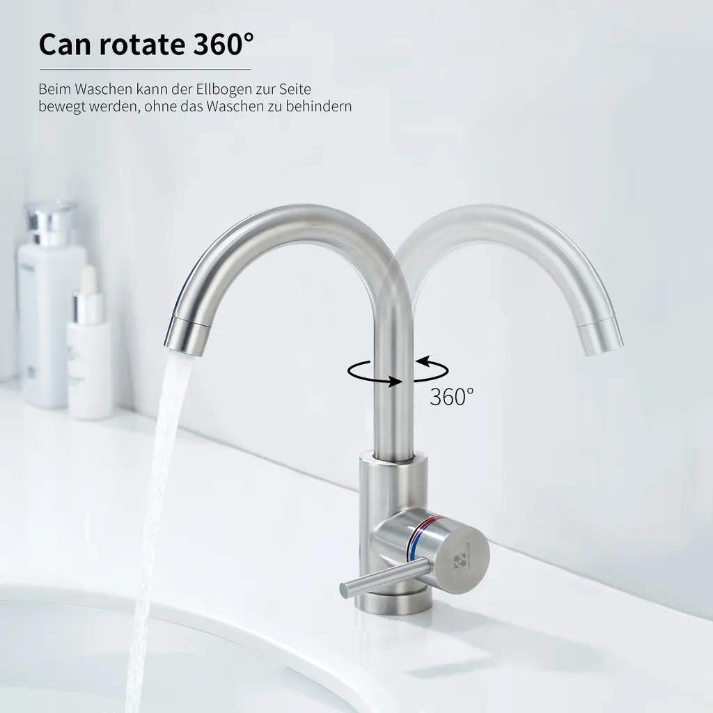 Niederdruck Wasserhahn Bad/Küche Niederdruck Badarmatur 360° Drehbar Badarmatur Küchenwasserhahn Aus Edelstahl Spültischarmatur Für Kaltwasser Und Spüle Boiler