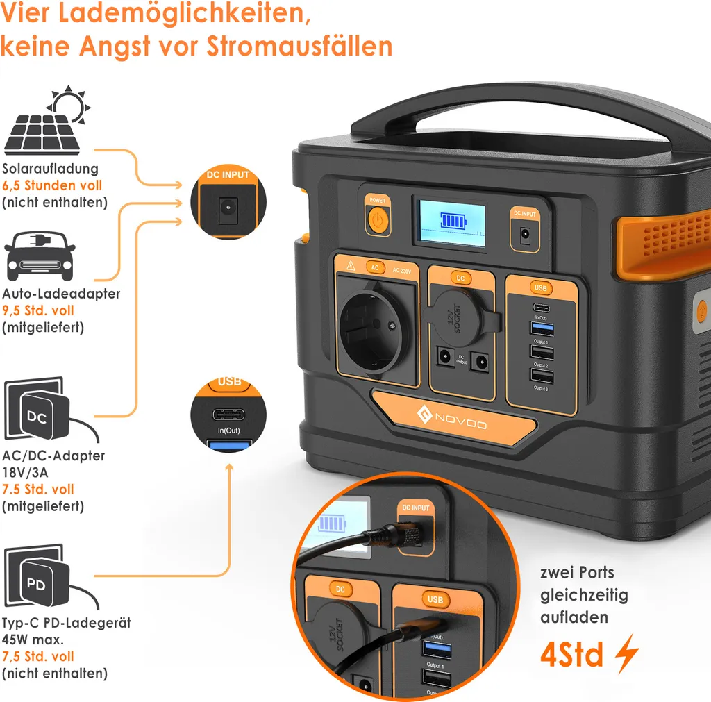 Schreibe die erste Rezension für „NOVOO Tragbare Stromerzeuger Power Station Solar Stromgenerator Solar Powerbank, 296Wh 80000mAh Mobiler Energiespeicher,230AC Steckdose,PD 45W Type-C,Solar Generator Für Notfall Campin“ Antwort abbrechen