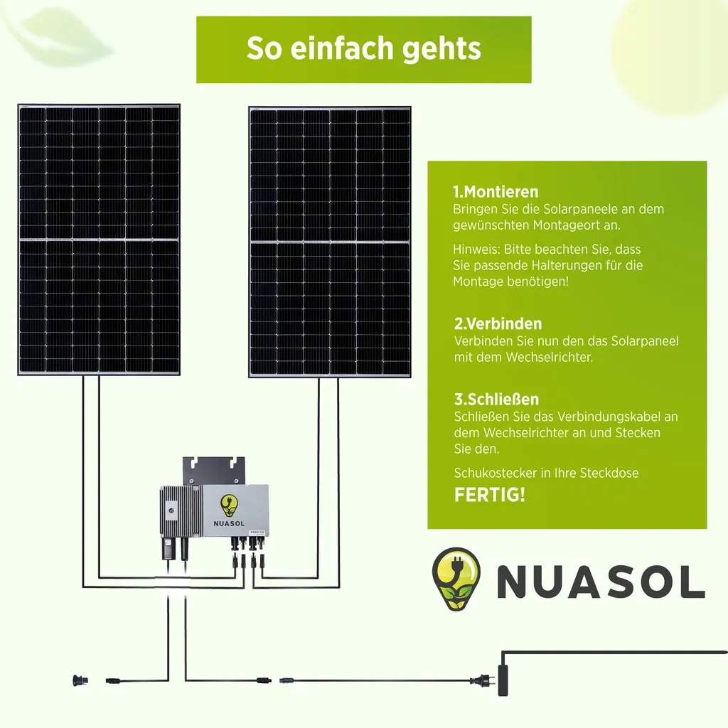 Schreibe die erste Rezension für „NuaSol Balkonkraftwerk 750W/600W Photovoltaik Solaranlage Steckfertig WIFI Smart“ Antwort abbrechen