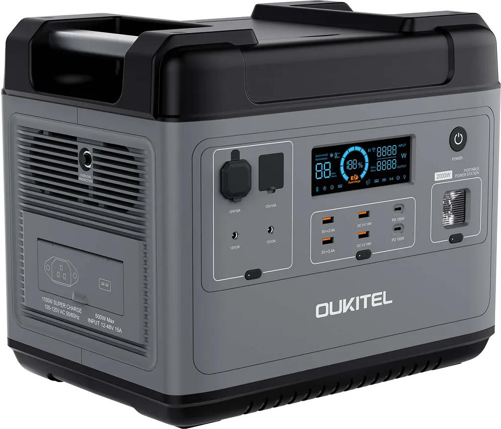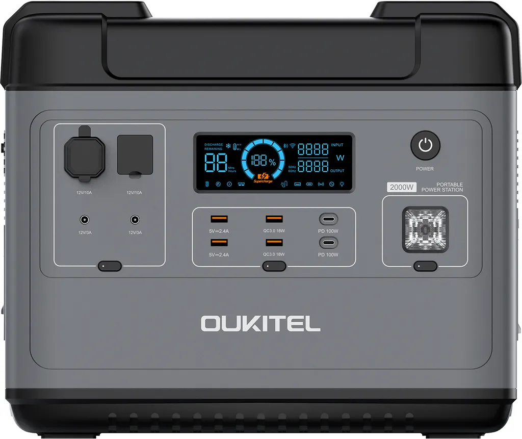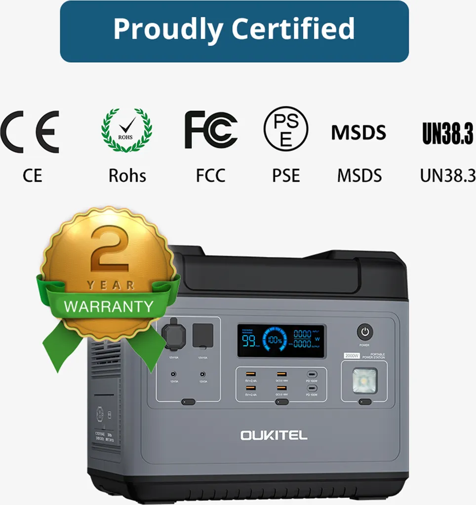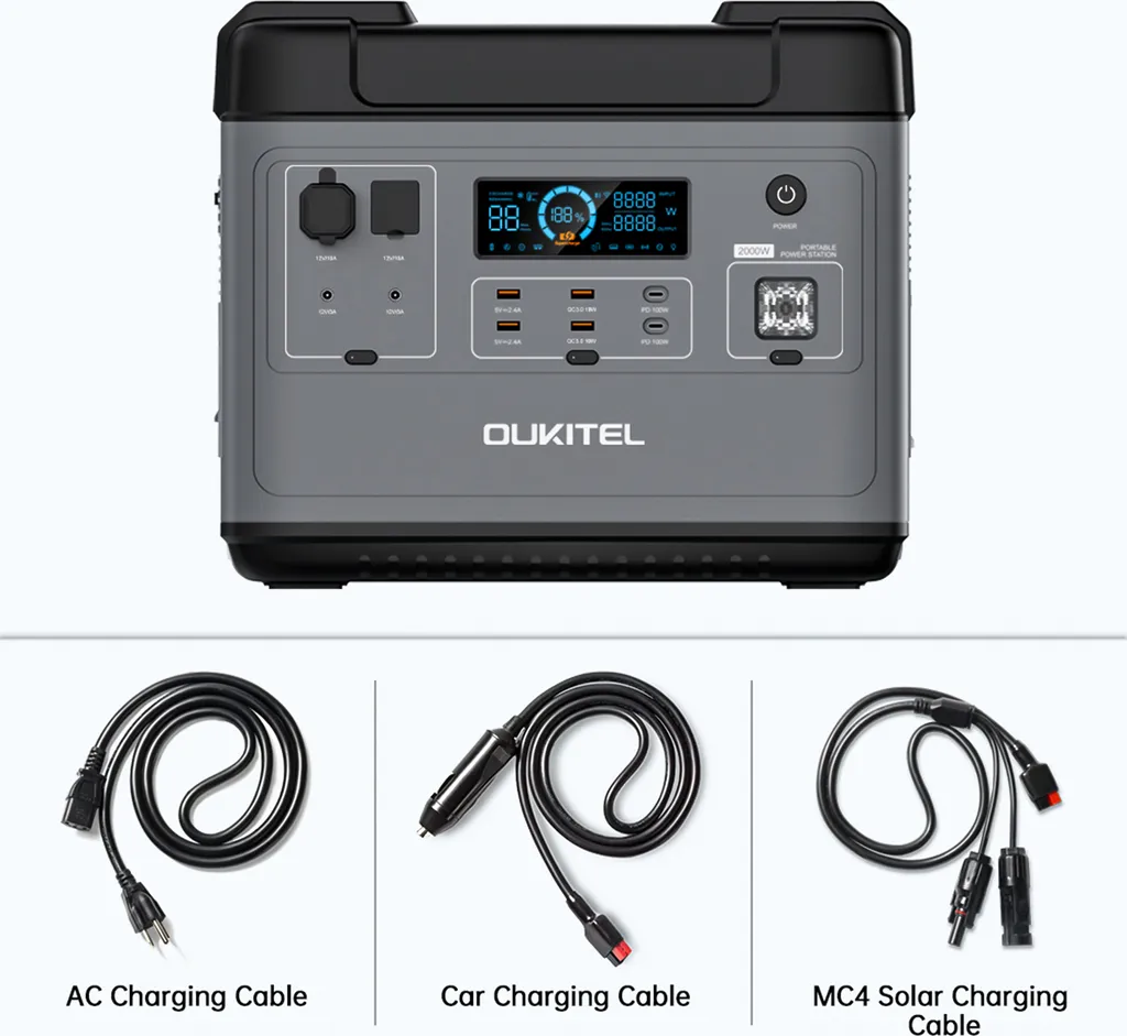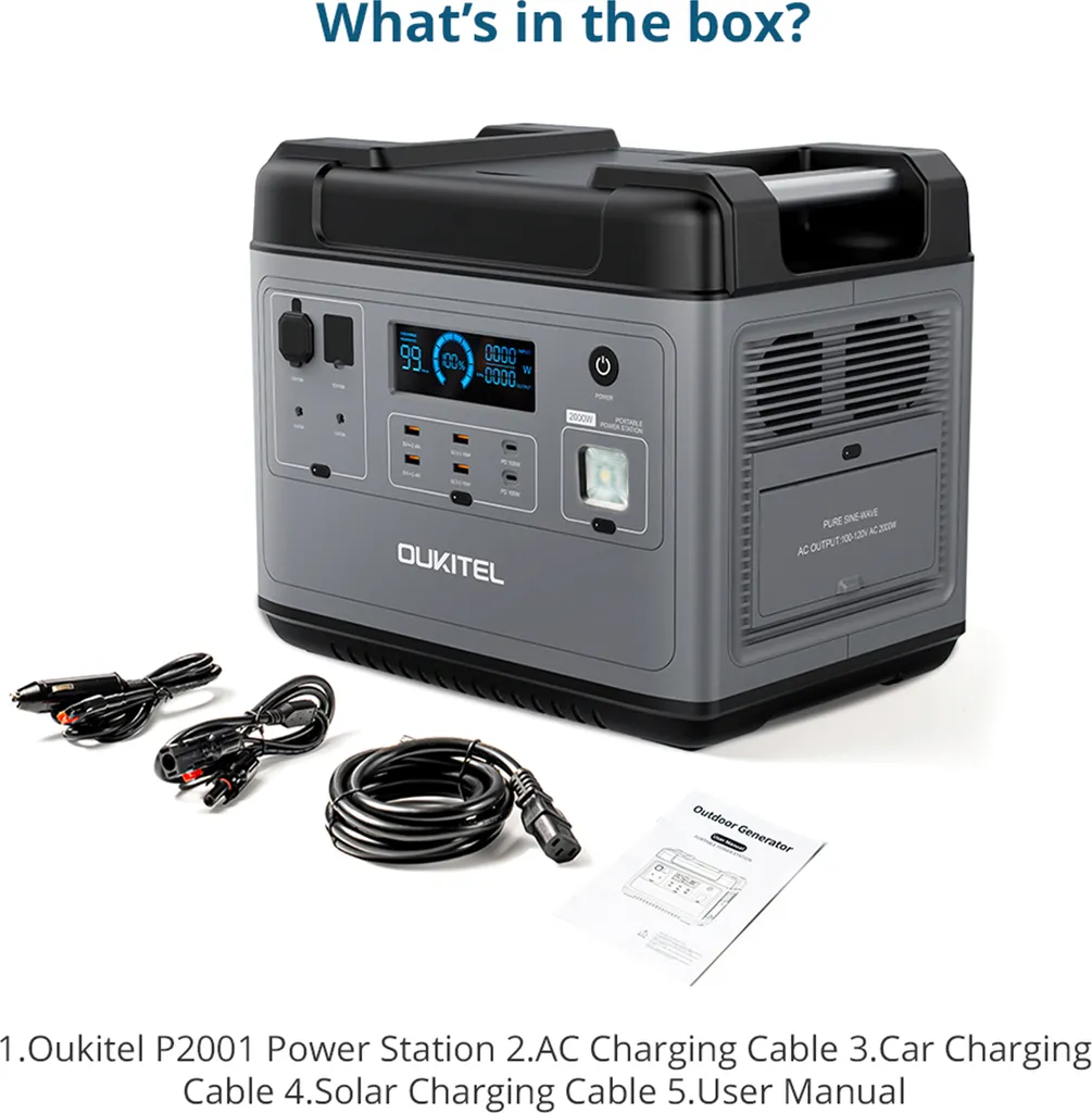 OUKITEL Tragbares Stromerzeuger P2001E, Solarspeicher Mit 2000Wh/51,2V LiFePO4 Akku Mit 2000W (4000W Peak) AC Ausgängen, Versorgt 13 Geräte Gleichzeitig, Solargenerator Mit Beleuchtung Für Outdoor Camping, Fernreisen, Heimgebrauch