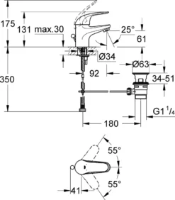 Grohe Einhand-Waschtischbatterie BAUEDGE DN 15 Zugstangen-Ablaufgarnitur 1 1/4″ Chrom