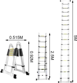 Wolketon Teleskopleiter 2.6m Stehleiter Mehrzweckleiter Alu Multifunktionsleiter Ausziehleiter