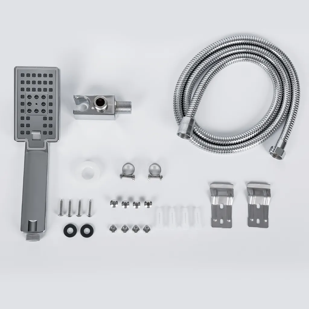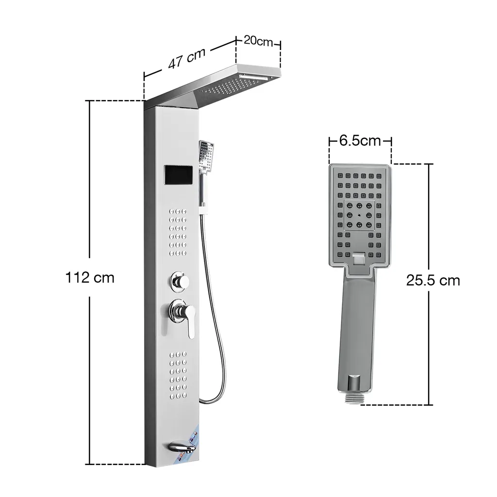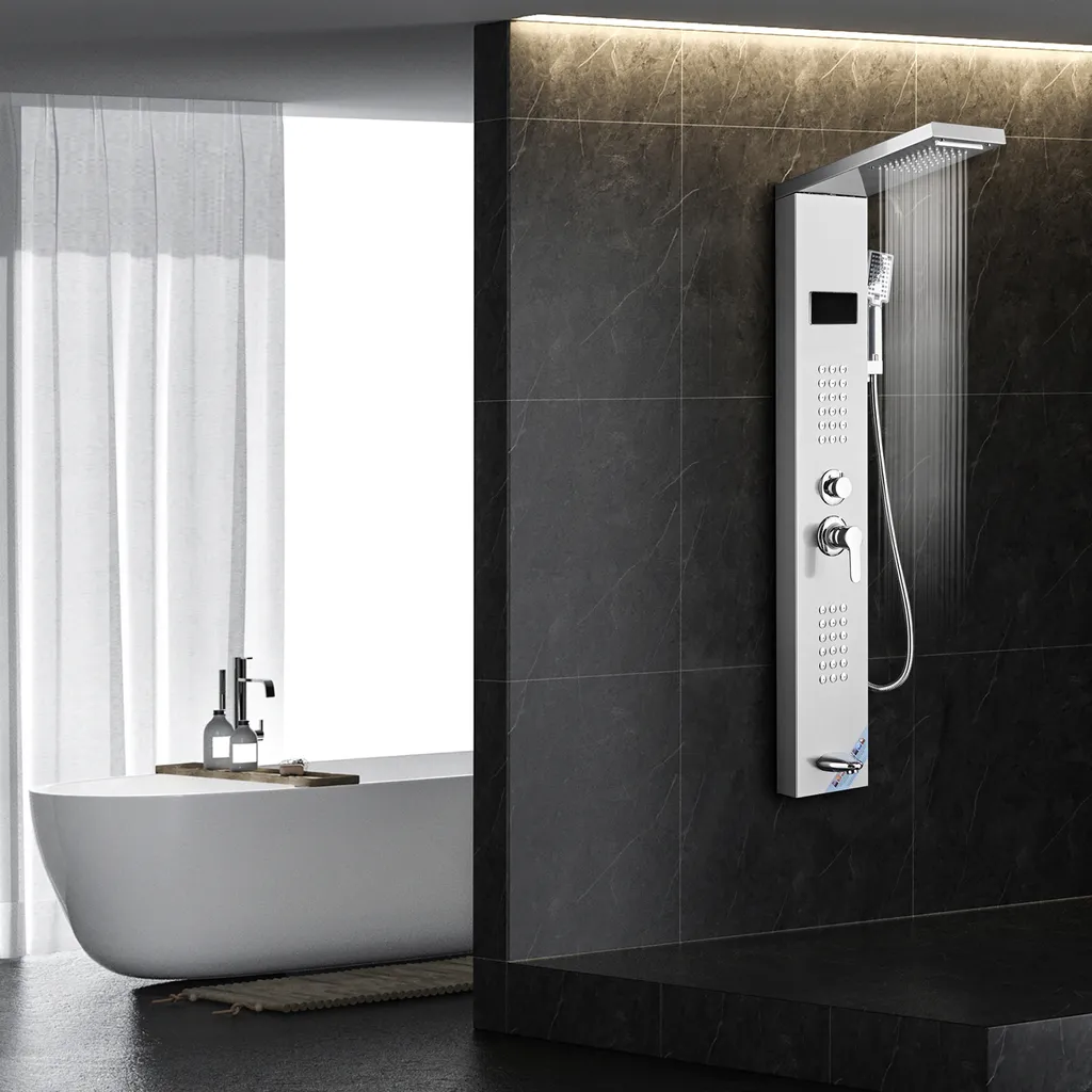 Puluomis Duschsystem Duschpaneel 5 Funktionen Duscharmatur Mit Kopfbrause Und 3 Stufen Handbrause, Regendusche Duschkopf Duschset Aus Edelstahl Mit Display , Silber Weiß