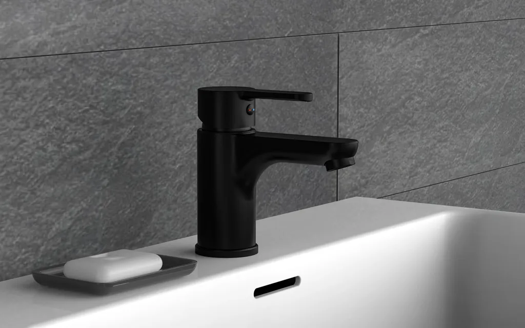 SCHÜTTE Design Waschtischarmatur Denver, Mischbatterie Mit Pop-Up Ventil, Einhebelmischer Badezimmer, Wasserhahn Bad Schwarz Matt