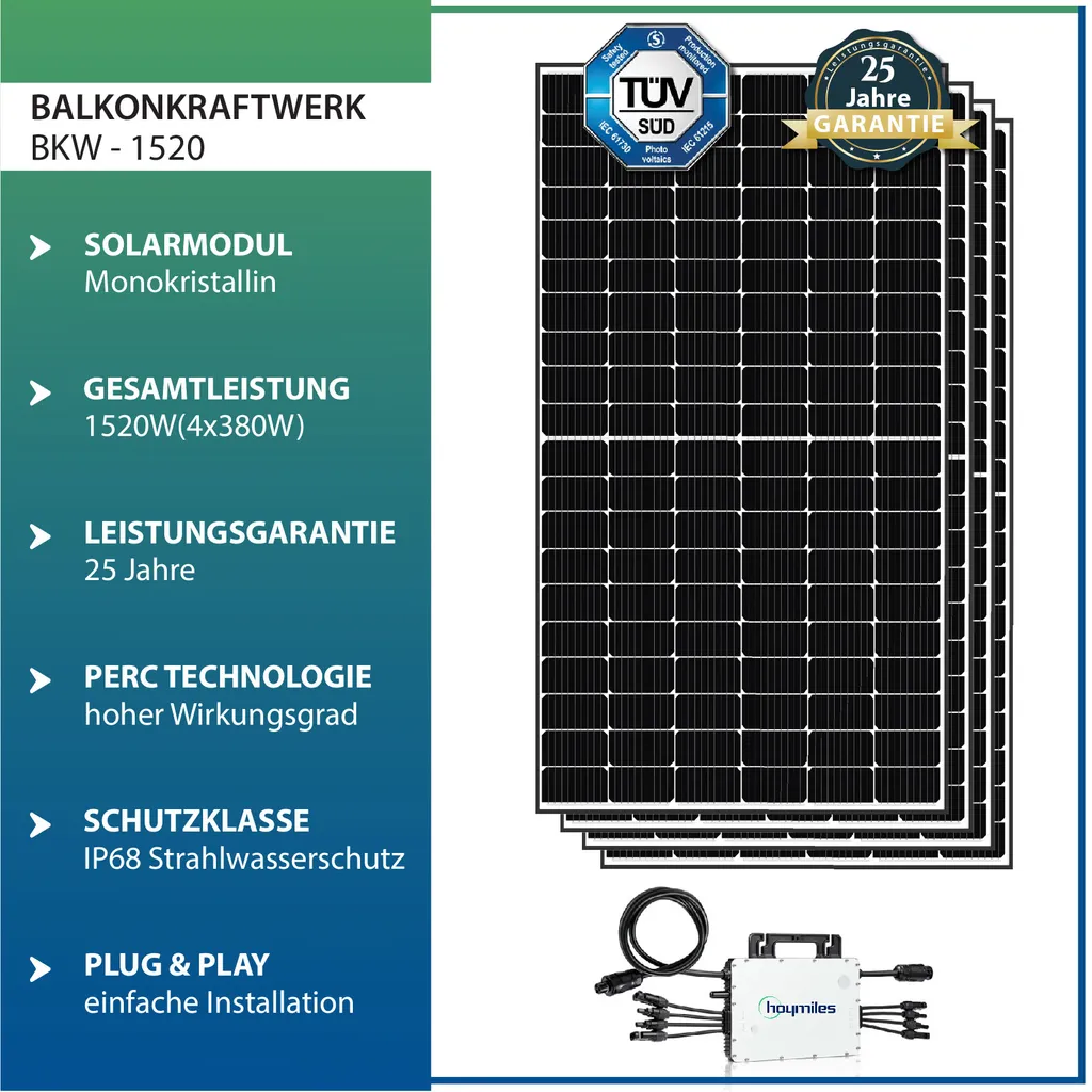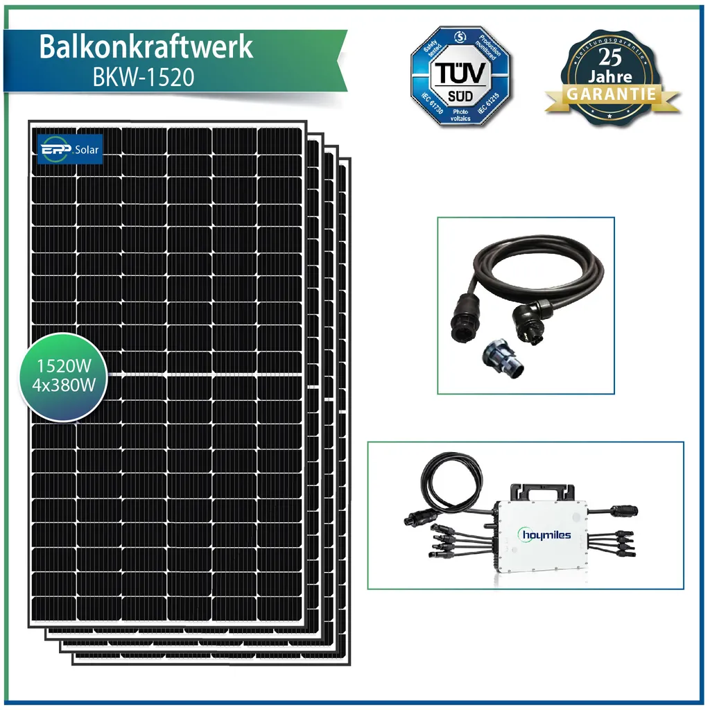 Solar-PV 1520W Balkonkraftwerk Photovoltaik Solaranlage – Mit EPP 380W Solarmodule Und Hoymiles 1500 Mikrowechselrichter