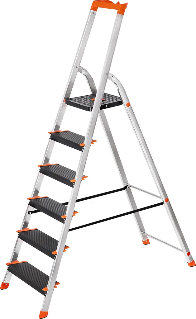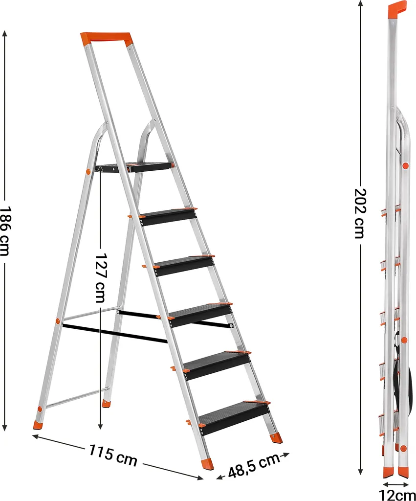 SONGMICS Leiter 6 Stufen, Max. Statische Belastbarkeit 150 Kg, 12 Cm Breite Stufen, Mehrzweckleiter, Aluleiter, Stehleiter, Werkzeugschale, Klappleiter, Rutschfest, Rheinland GS-Zertifikat, Erfüllt EN131 GLT06BK