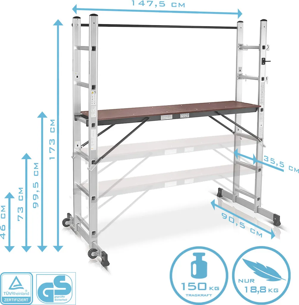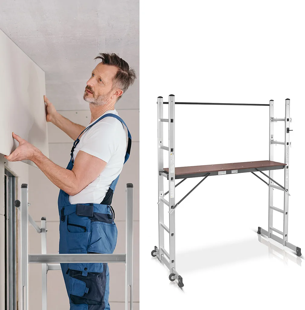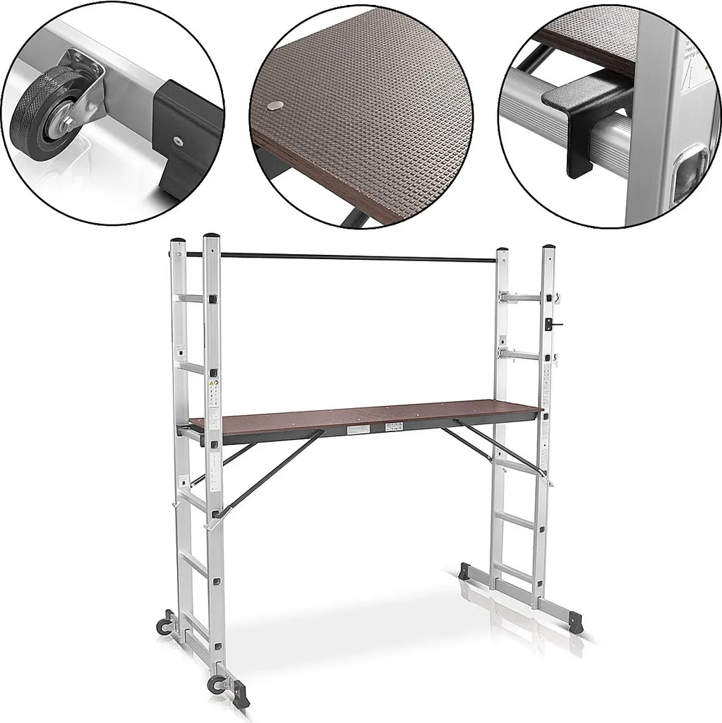 STAHLWERK Leitergerüst 150 Kg Alu Klappleiter Arbeitsplattform Mehrzweckleiter