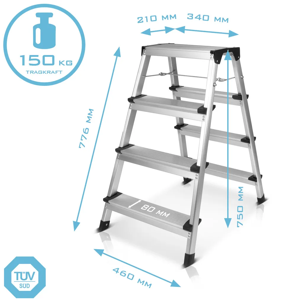 STAHLWERK Trittleiter 150 Kg Alu Leiter Klappleiter Klapptritt Mehrzweckleiter