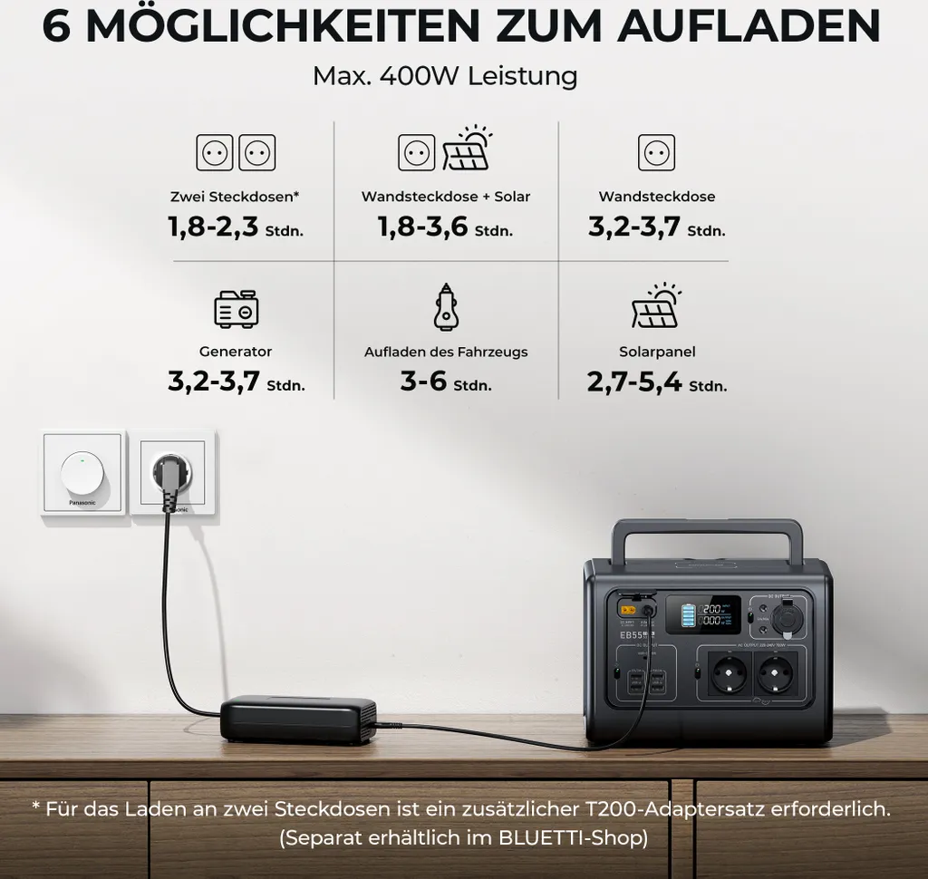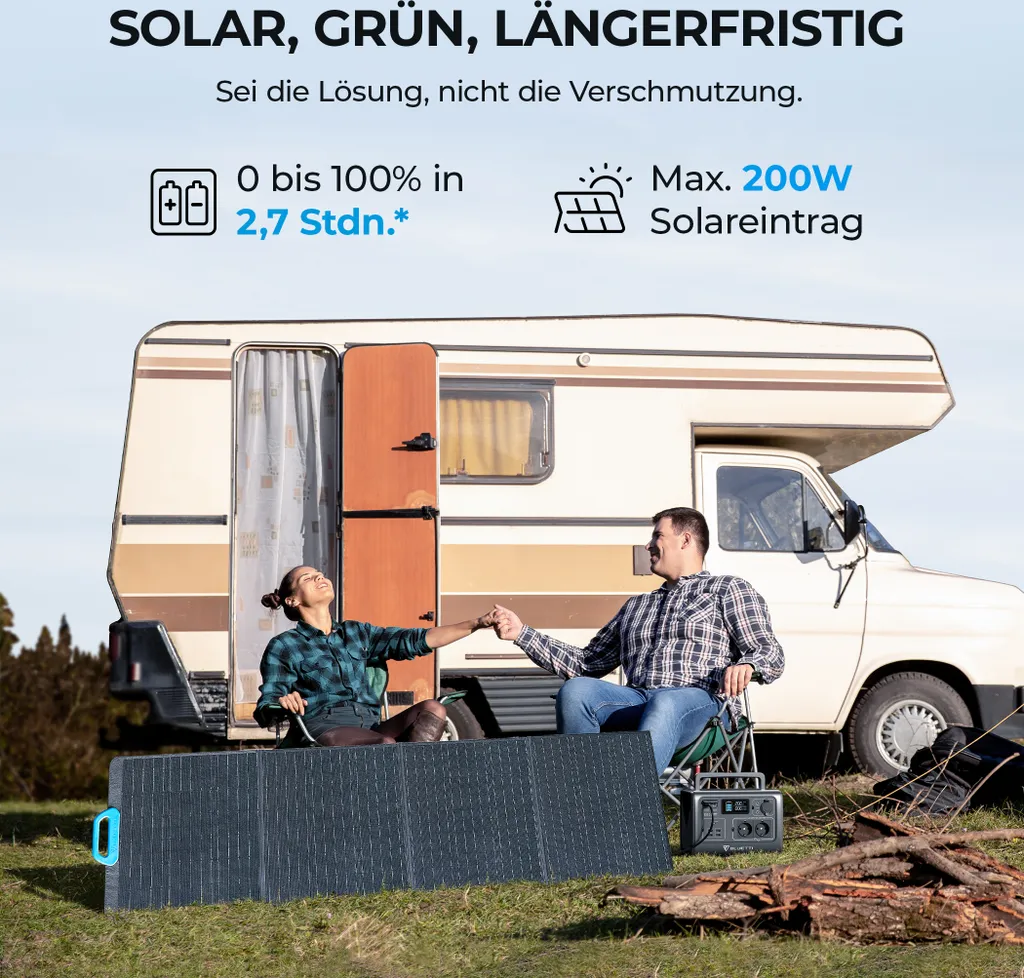 Stromerzeuger BLUETTI EB55 Mit PV200 Solarpanel, 537Wh LiFePO4 Batterie Mit 11 Vielseitige Ausgänge, Tragbarer Solarspeicher Für Boote, Büro, Gartenhäuser