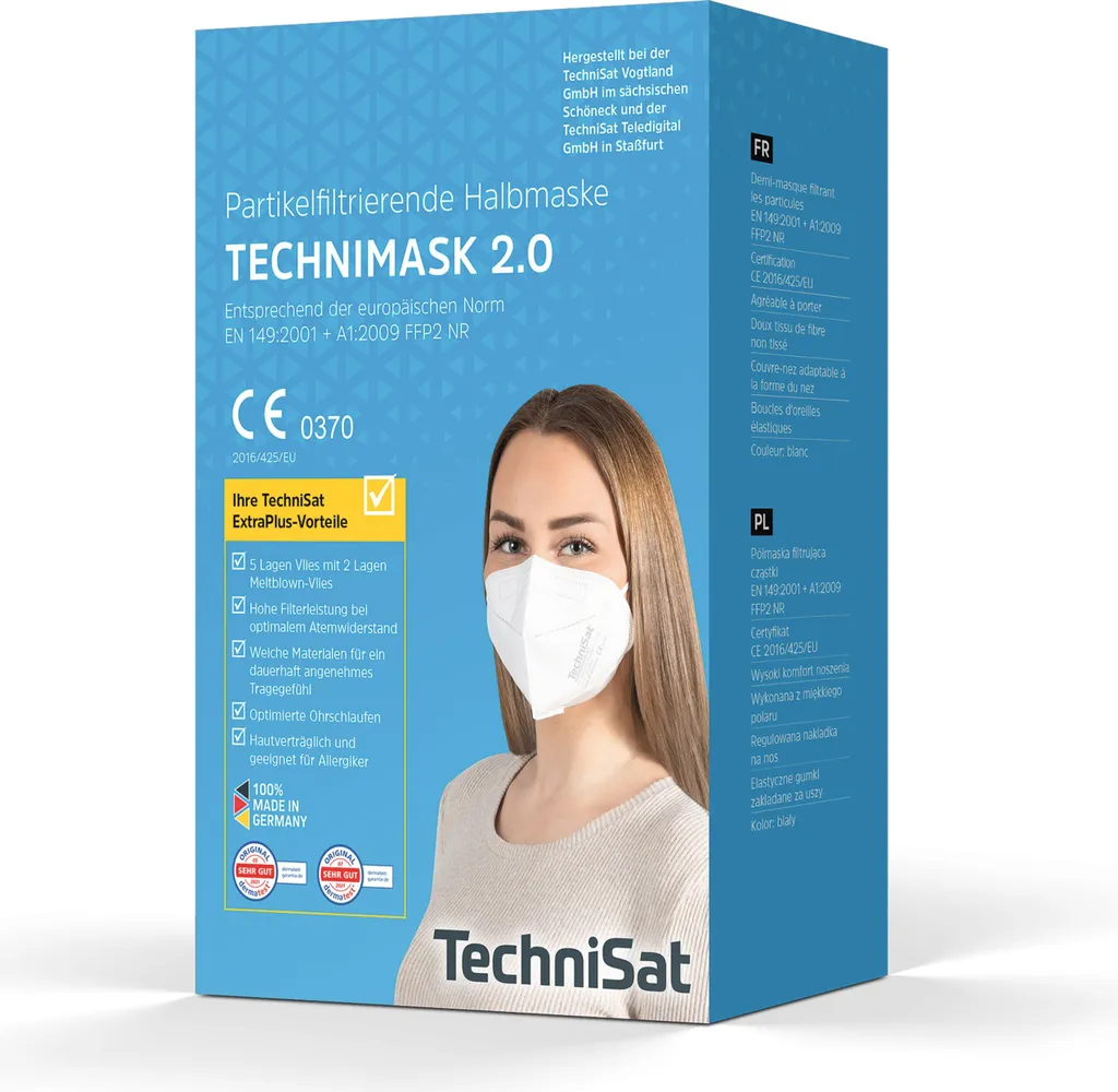 Technisat TECHNIMASK 2.0 FFP2 15 Stück – Mund- Und Nasenmaske – Weiß