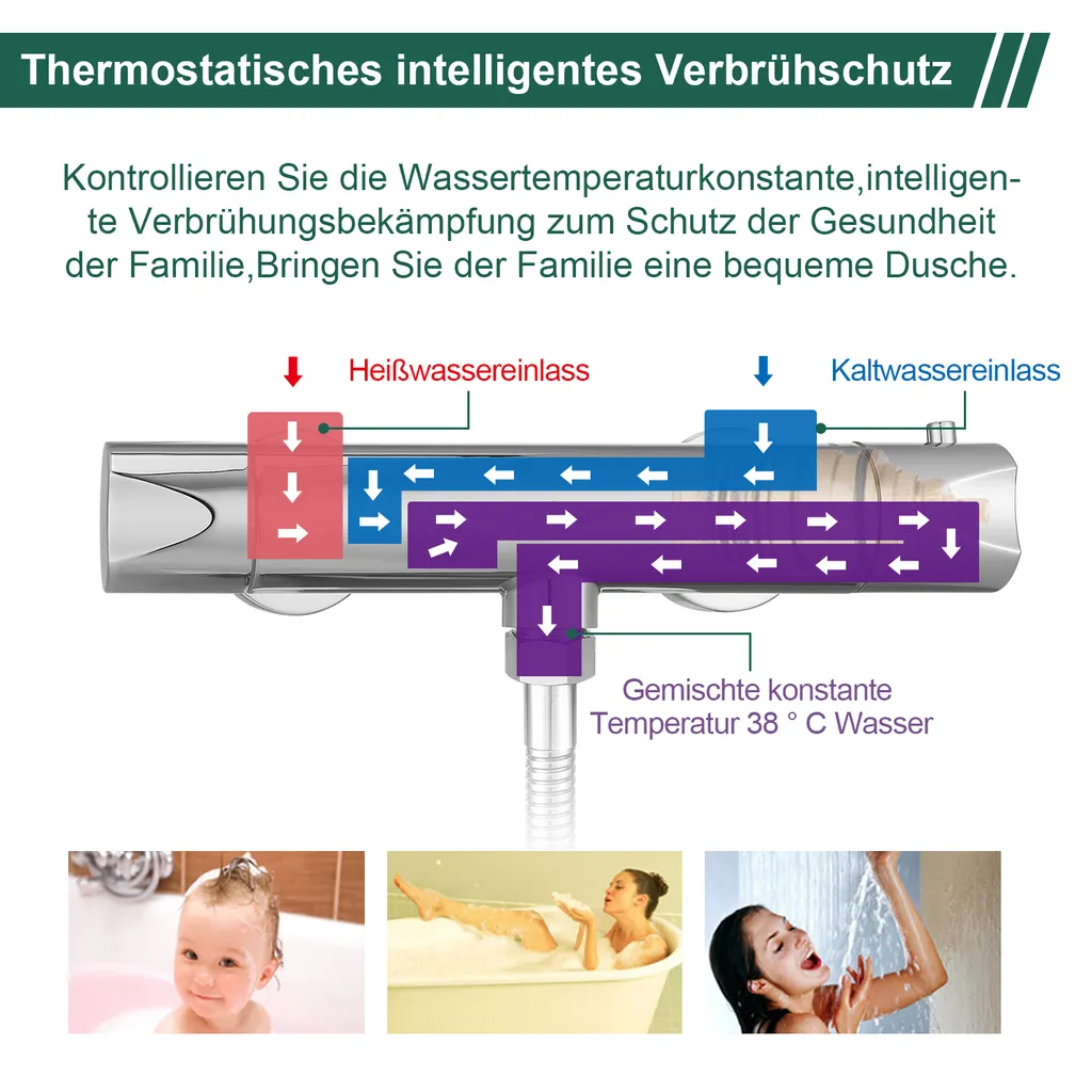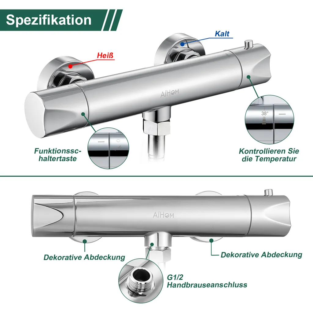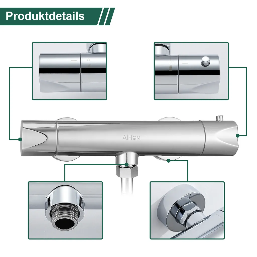 Thermostat Armatur Brausethermostat Brausearmatur Brausemischer Thermostat Mischbatterie Mit 38 °C Sicherheitstaste,ufputz Duschthermostat Mischbatterie Dusche Für Bad, Chrom