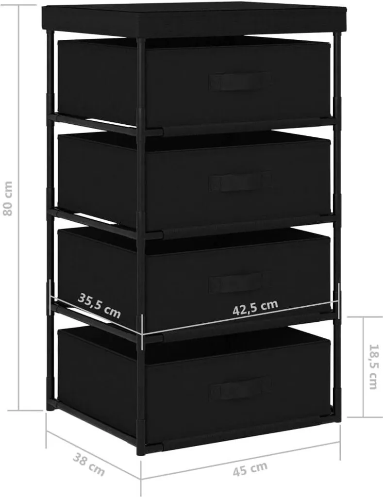 VidaXL Aufbewahrungsregal Mit 4 Stoffkörben Stahl Schwarz