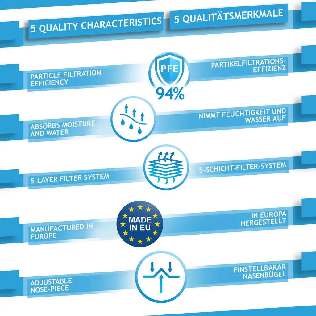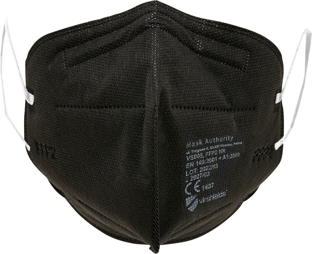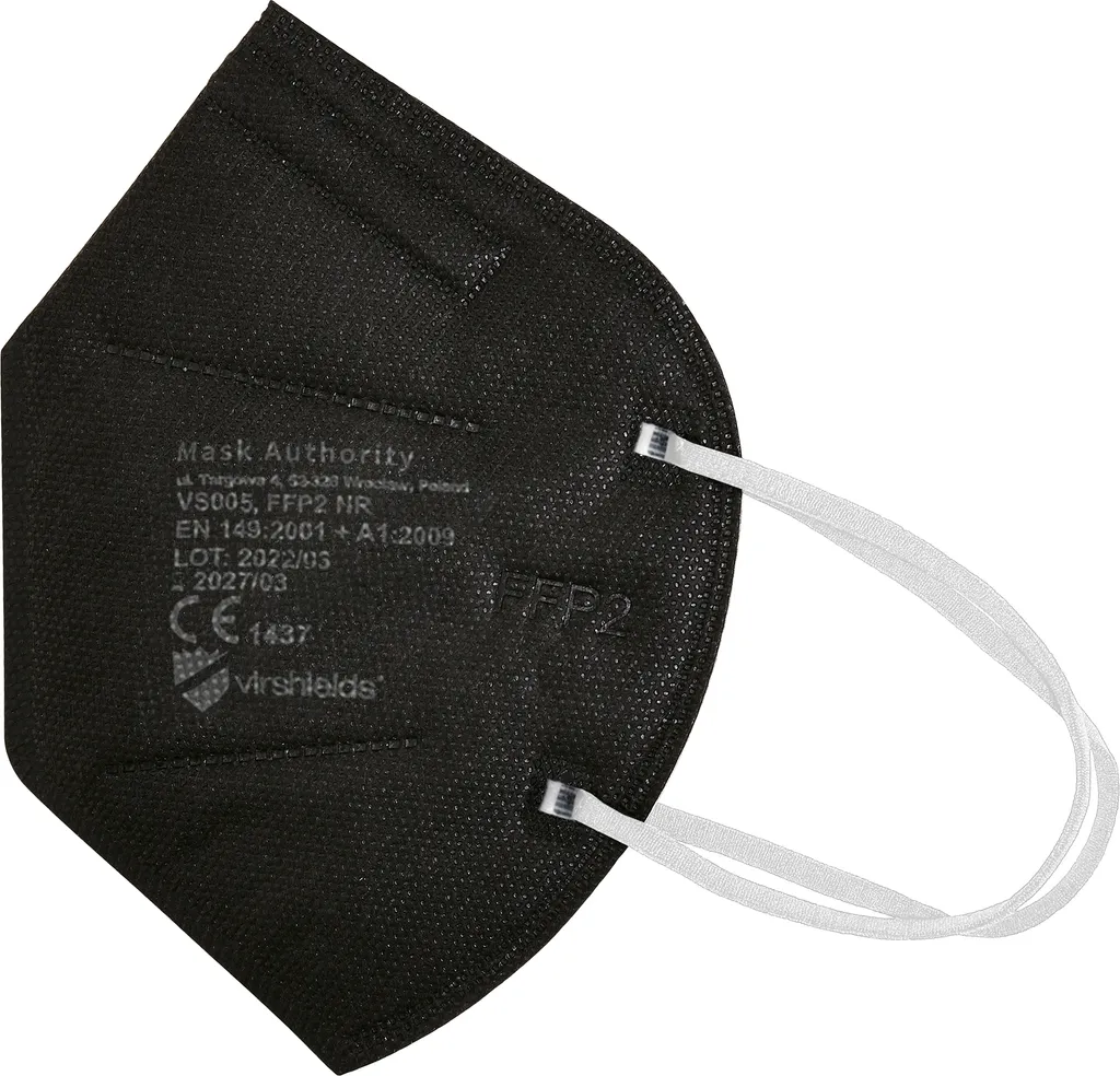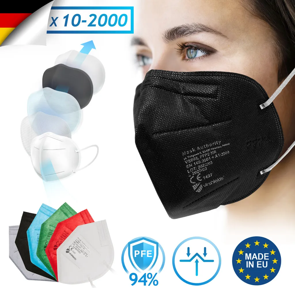 Virshields® FFP2 Mundschutz Maske – PFE 94%, EN 149:2001+A1:2009, 5 Lagen, 10-2000 Stück, Filtrierend, EU, Farbwahl – Halbmaske, Atemschutzmaske, Schutzmaske (100 Stück, Schwarz)