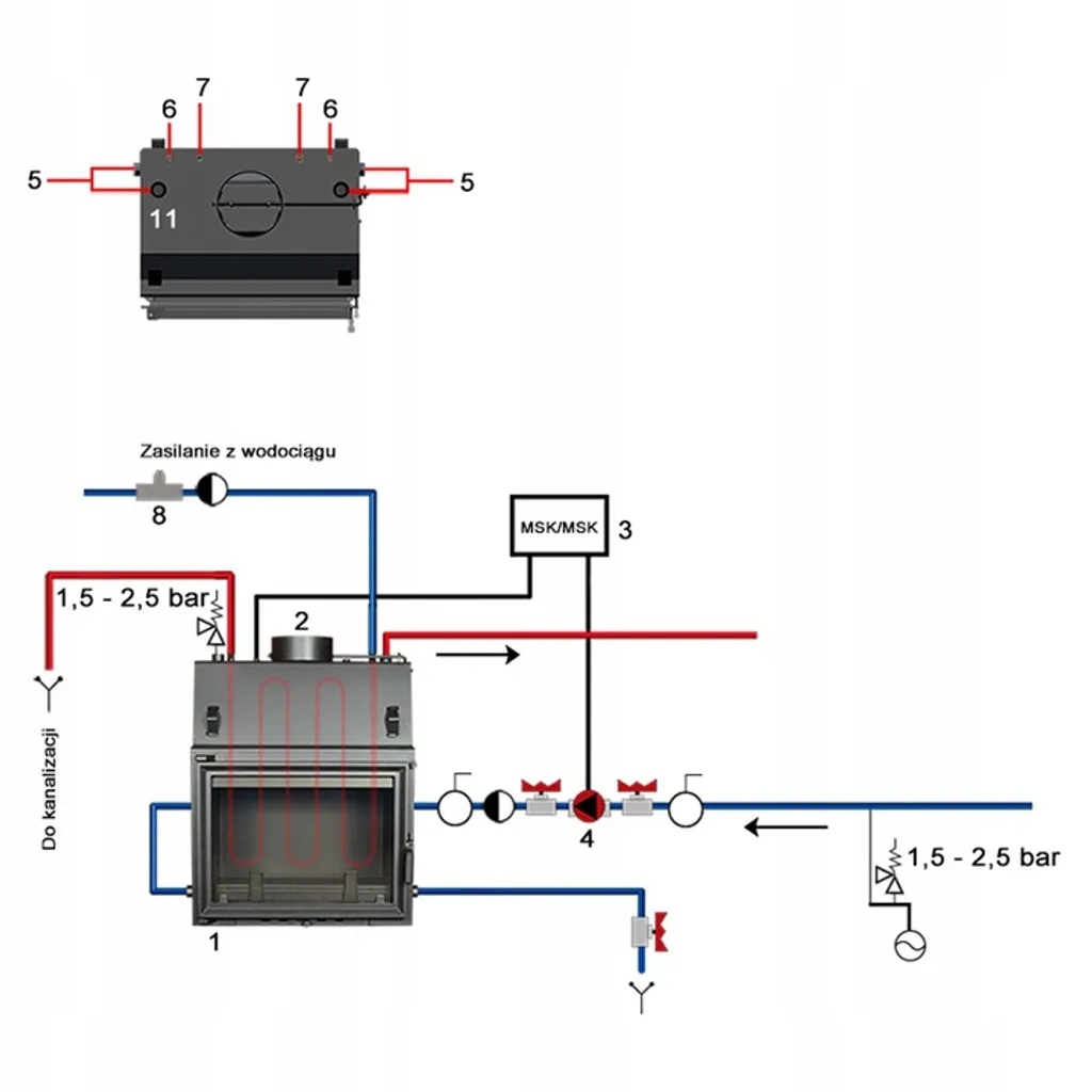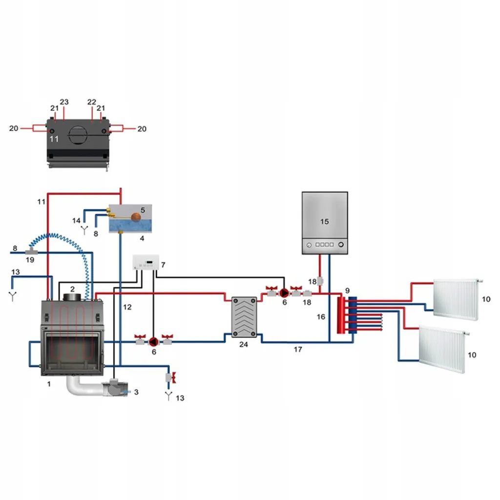 Wasserführender Kamineinsatz LUCY 20 KW Ø 200 Mit Türfeder