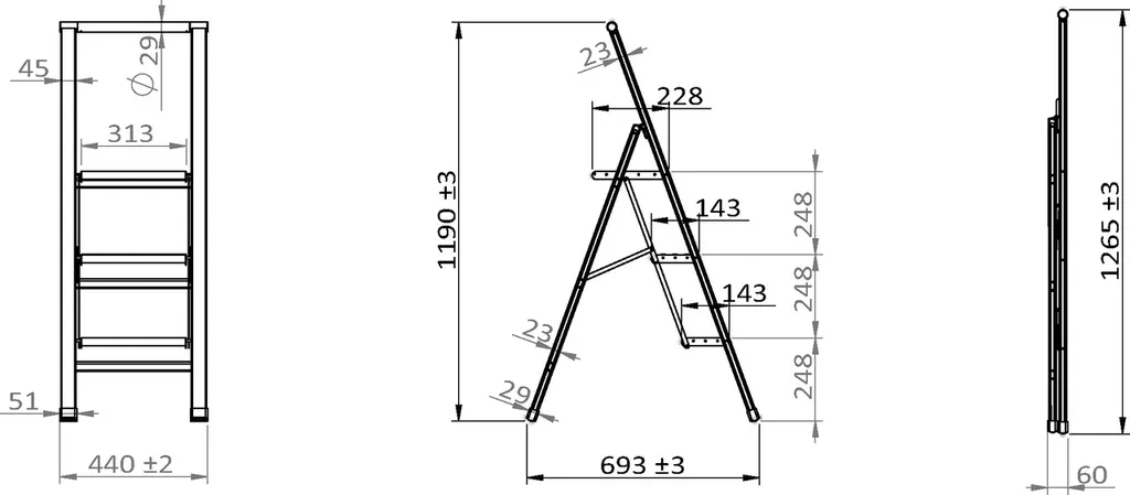Trittleiter Mit 2 Stufen – Doppelseitige Profi-Leiter Aus Aluminium, Bis Zu 125 Kg Belastung