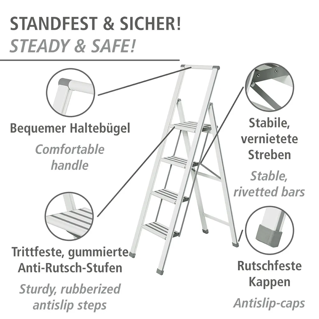 Wenko Alu-Design Klapptrittleiter 4-stufig Weiß