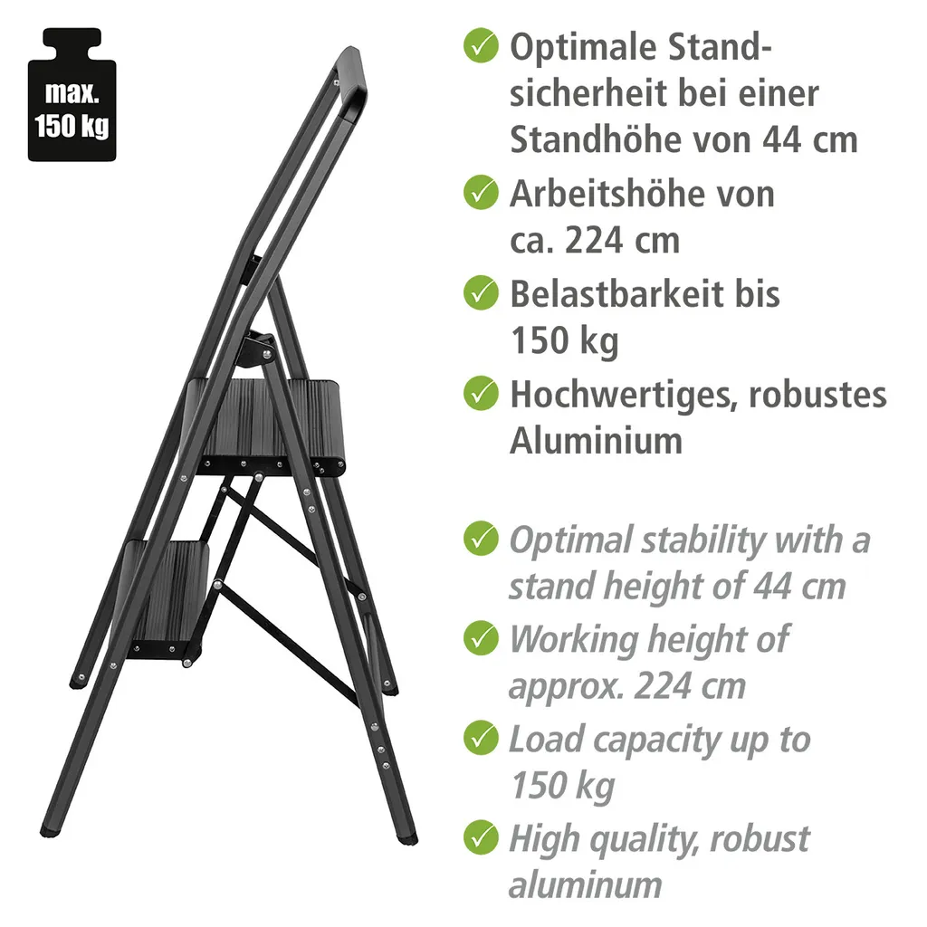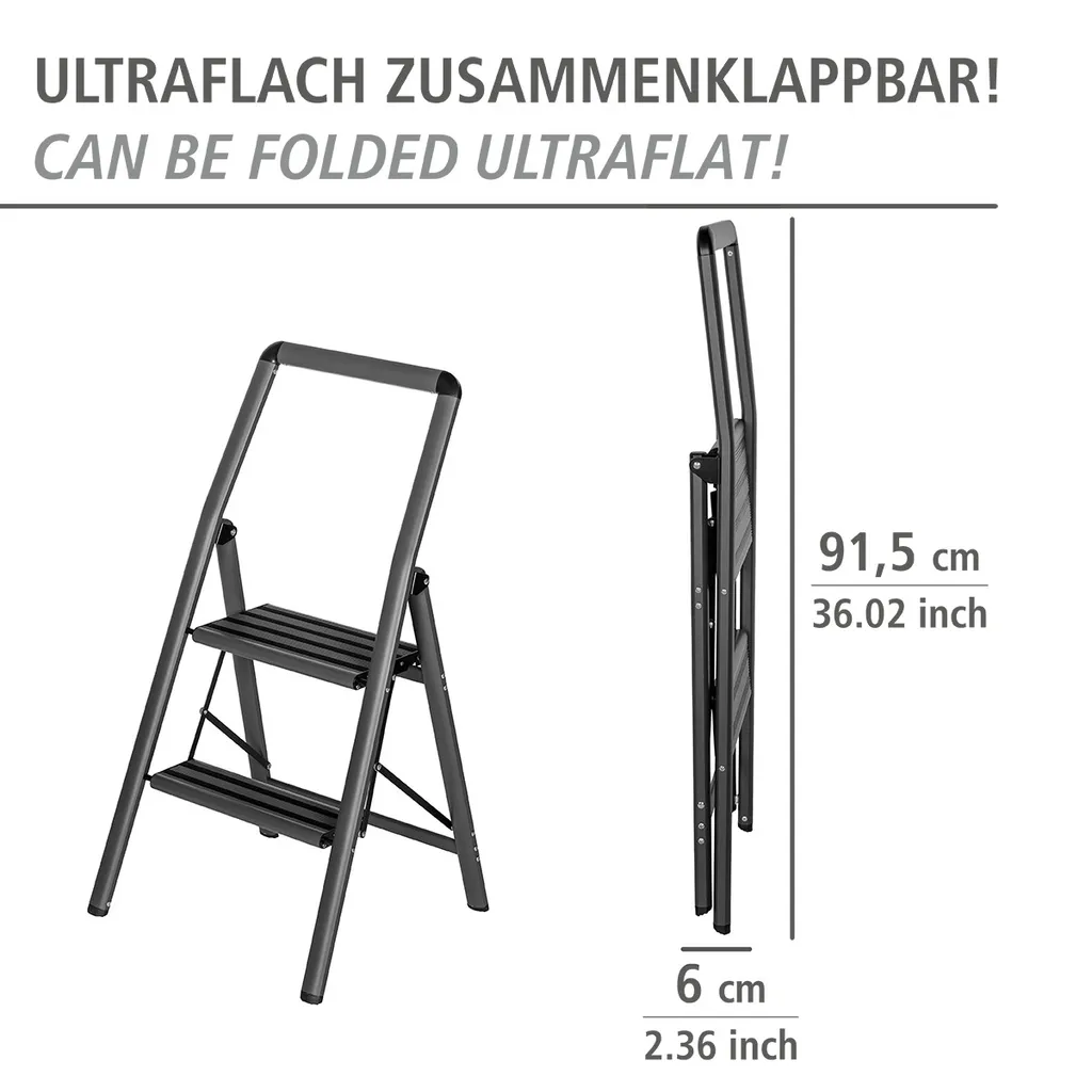 Wenko Alu-Klapptrittleiter Compact 2-stufig Dunkelgrau